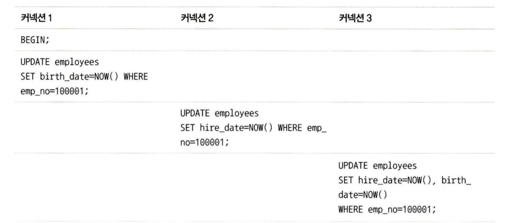 SELECT * FROM member WHERE last_name LIKE "J%" LOCK IN SHARE MODE; // 읽기 잠금(공유락)
