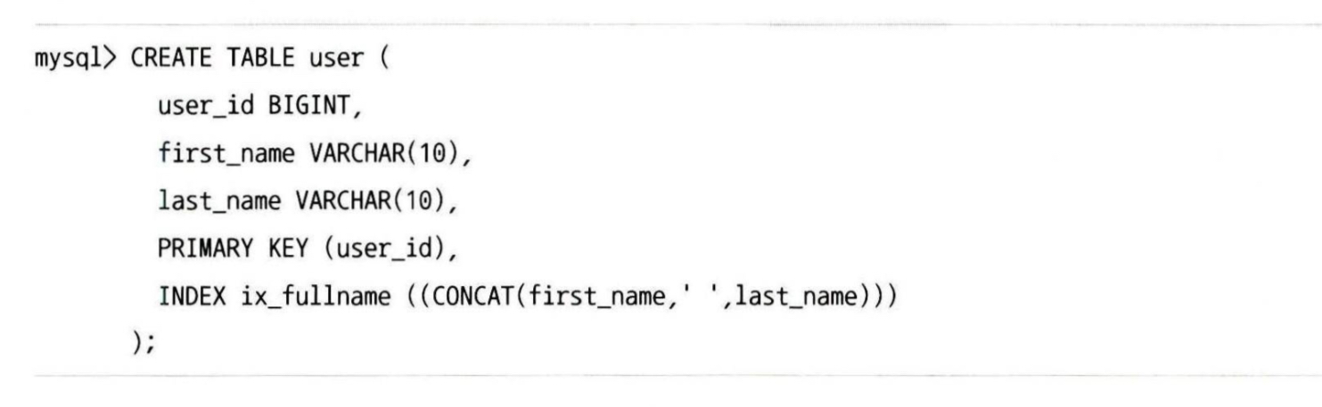 MySQL 8.0 버전부터는 다음과 같이 테이블의 구조를 변경하지 않고, 함수를 직접 사용하는 인덱스를 생성할 수 있게 됐다.